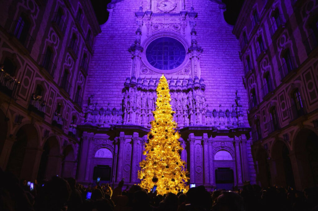 El Monestir de Montserrat ha inaugurat el temps d’Advent amb la tradicional encesa de la il·luminació nadalenca i la presentació d’un arbre monumental de 8 metres, decorat amb 5.400 llums LED. L’arbre, situat a l’atri del monestir, es converteix en un punt d’acollida per als pelegrins que visiten l’abadia en aquestes dates.